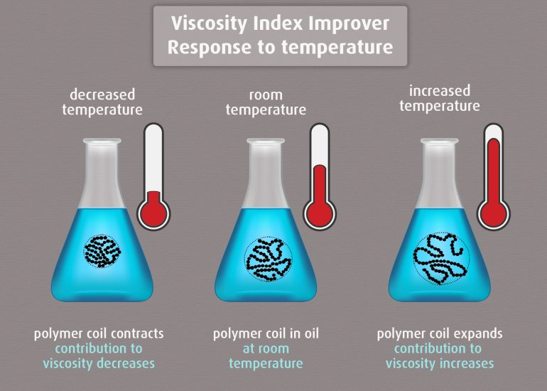 Higher-molecular-weight VIIs make better thickeners, but tend to have less resistance to mechanical shear. Lower-molecular-weight VIIs, on the other hand, are more shear resistant, but do not improve viscosity as effectively at higher temperatures, meaning they need to be used in larger quantities.