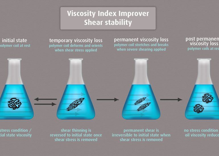 โThere are several different types of VII additives, but not all are equal. High-quality VIIs are less susceptible to permanent shear loss than low-cost, low-quality VIIs. It is for this reason that the polymer(s) selected is/are vital to the effectiveness of the VII additive and overall performance of the lubricant at varying operating temperatures. This is especially true of high-temperature, high-shear (HTHS) applications,โ Lumley adds.